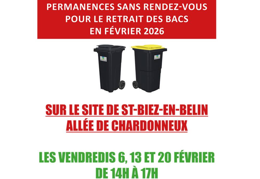 Permanences sans rdv pour le retrait des bacs les vendredis 6, 13 et 20 février 2026
